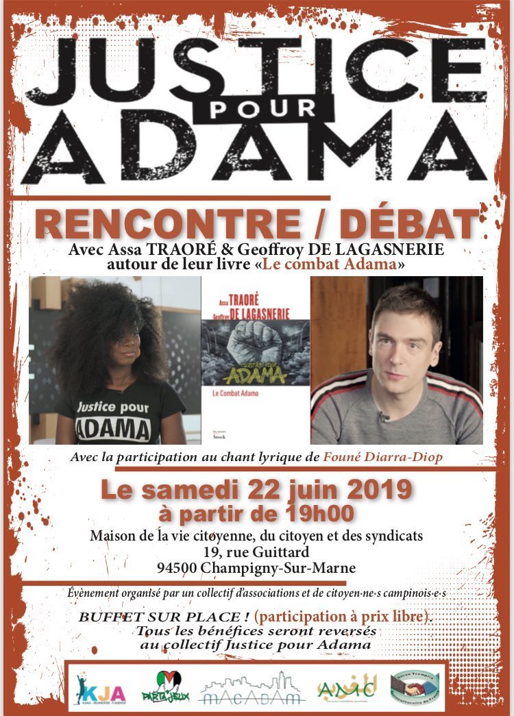 19 juin : débat sur la gauche et les luttes ; 22 juin : rencontre sur Le Combat Adama