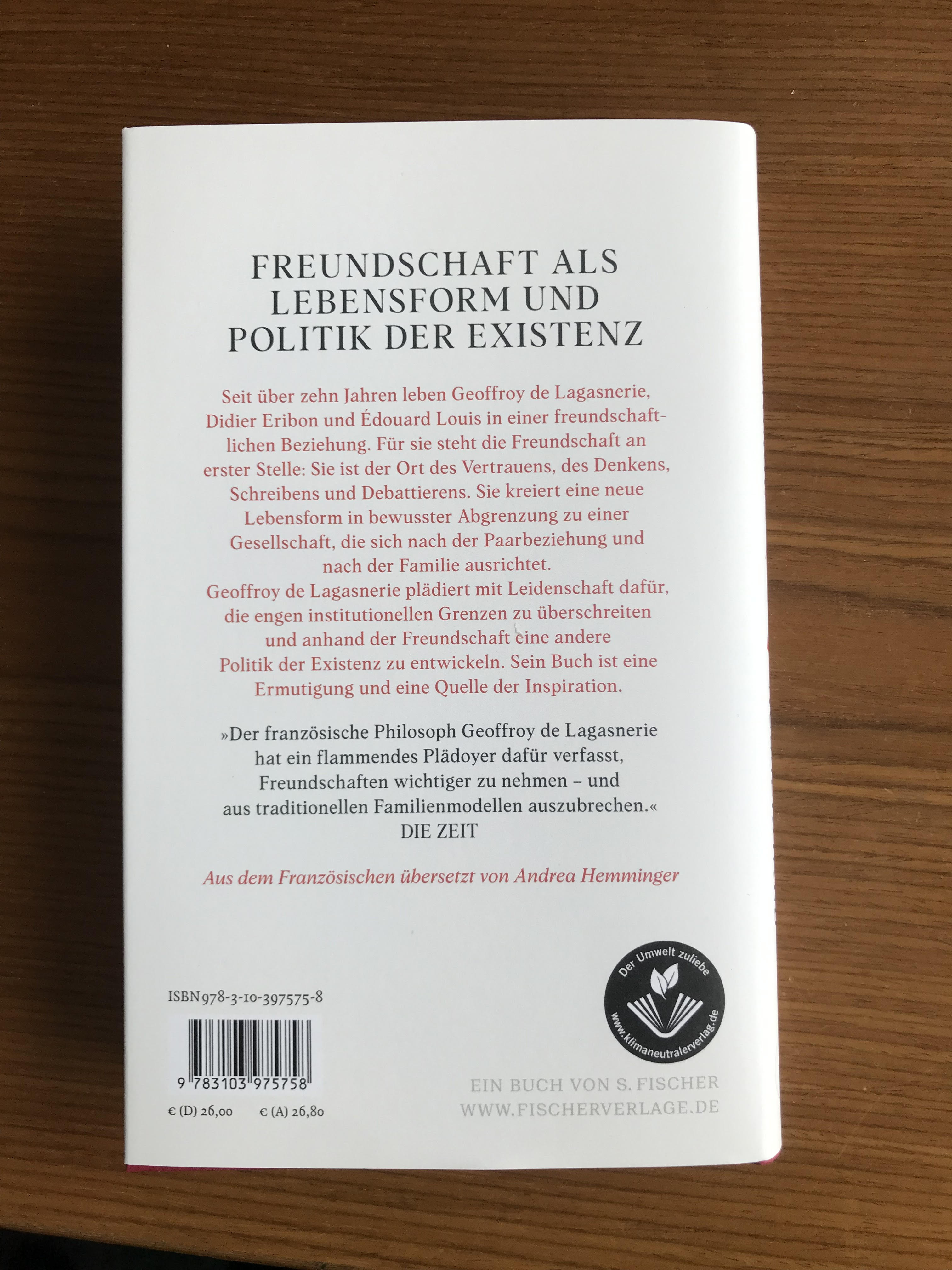 Von Aristoteles über Montaigne und Michel Foucault hat sich eine Philosophie der Freundschaft entwickelt, die Geoffroy de Lagasnerie auf persönliche und originelle Weise fortschreibt. Sein Buch ist eine Ermutigung und eine Quelle der Inspiration.