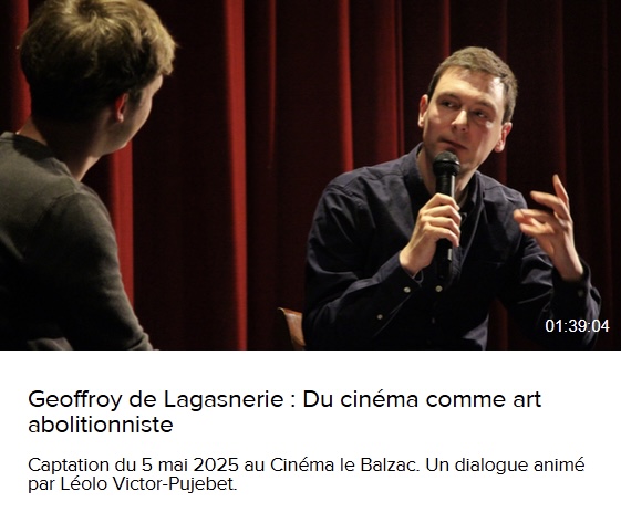 La captation vidéo de la soirée qui s’est tenue au cinéma le Balzac le 5 mai 2025 sur « Le cinéma comme art abolitionniste » est en ligne.