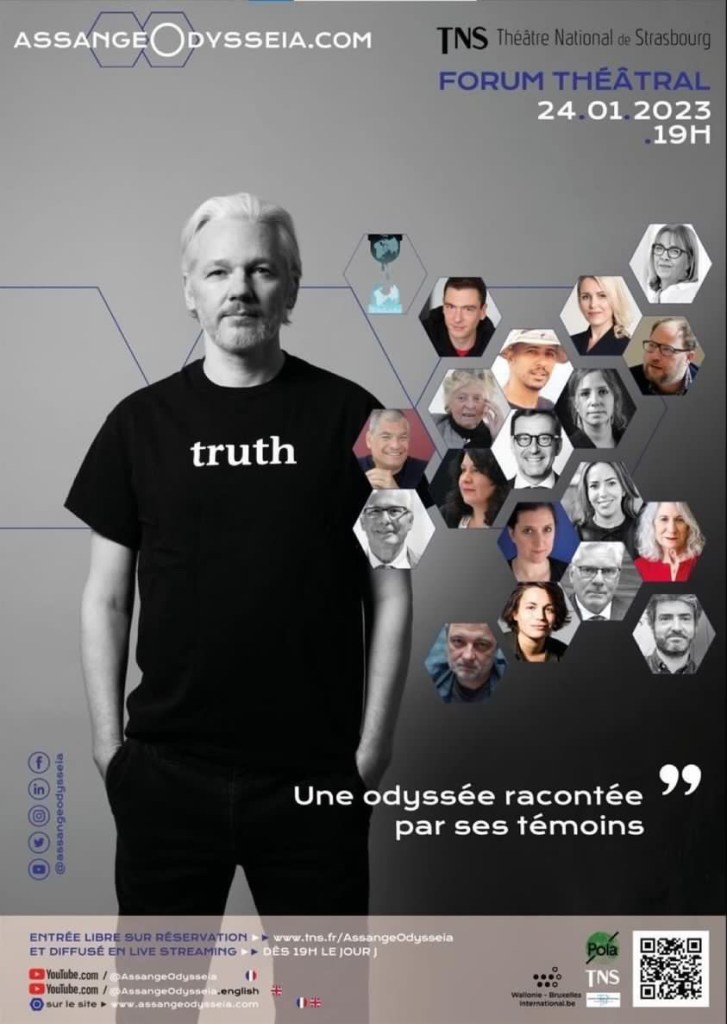 Je participerai le mardi 24 janvier 2023 à la grande soirée qui se tiendra au Théâtre National de Strasbourg autour de Julian Assange, en prison en Angleterre depuis presque 4 ans et qui semble de plus en plus sérieusement menacé par une extradition aux Etats-Unis où il risque la prison à vie.